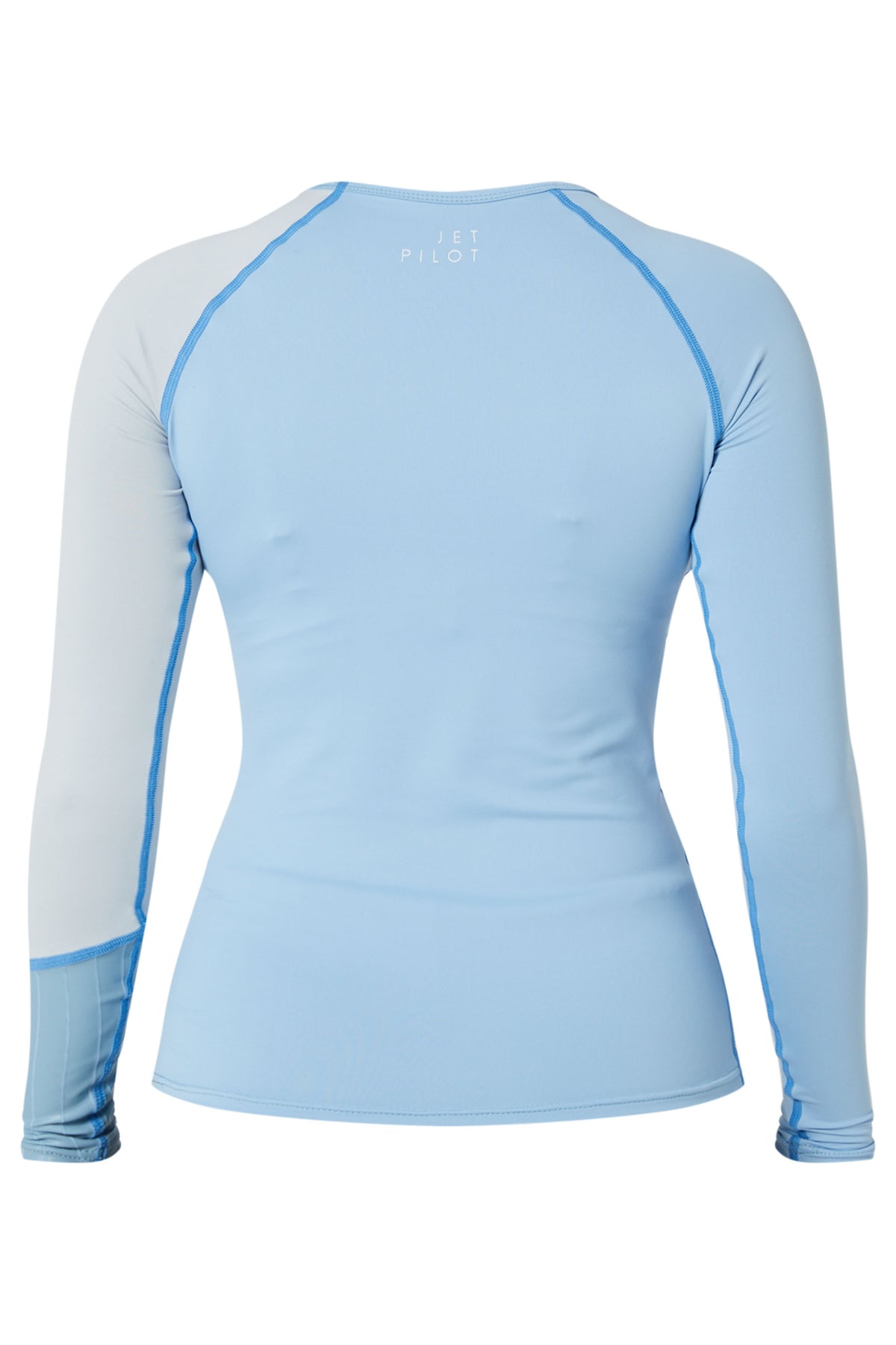 The women's Cause Long Sleeve Rashie is a raglan style, UV protection rashie with printed stripe sleeve and single colour print logo screen print on front and back panels on a stretchy nylon/Spandex fabric. Available in purple, black or light blue.